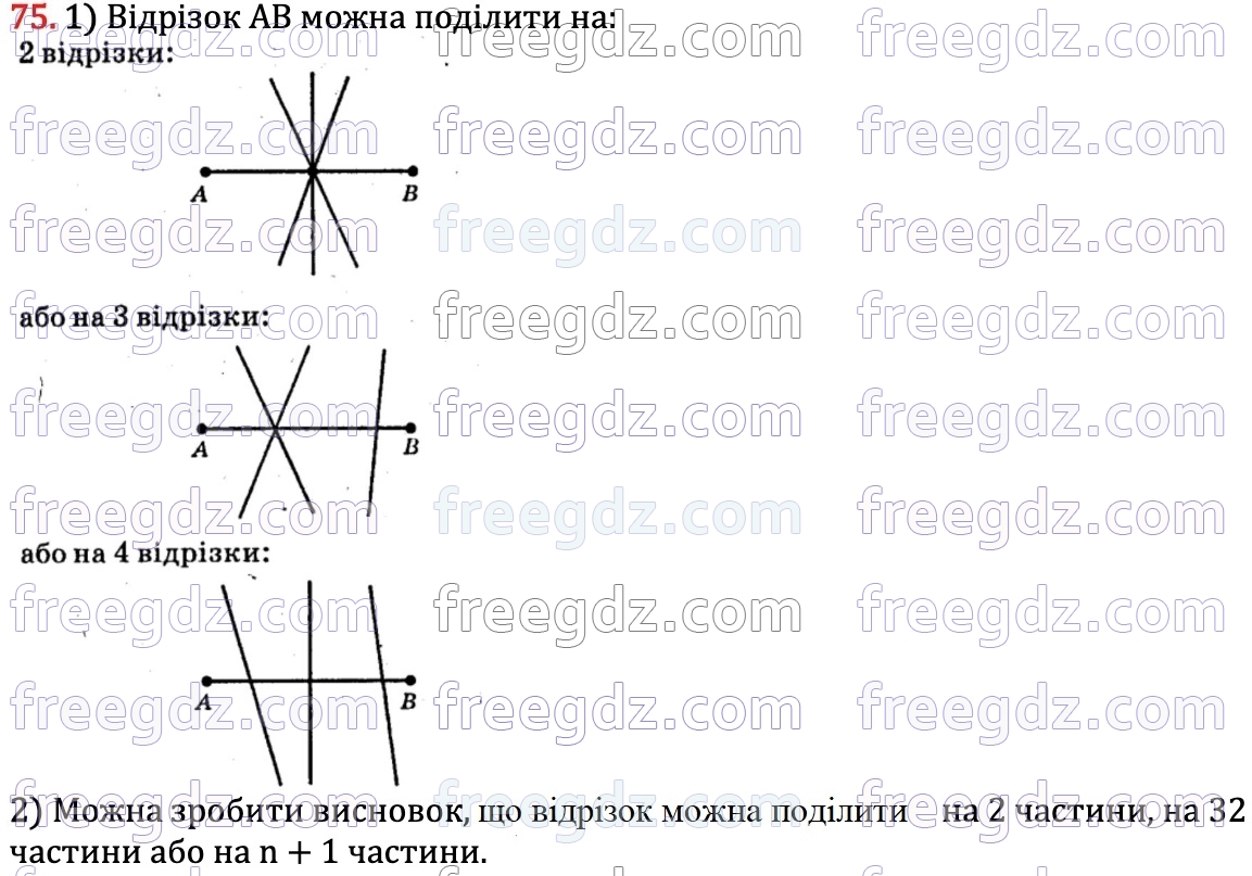 ГДЗ (відповіді та розв'язання) до вправи №75 - Вправи для повторення розділу 1 - Розділ 1. Елементарні геометричні фігури та їх властивості |