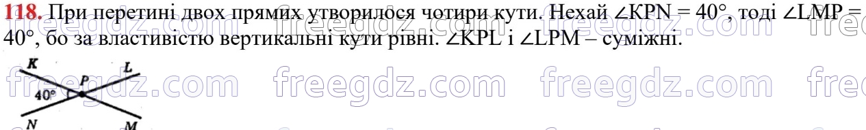 ГДЗ (відповіді та розв'язання) до вправи №118 - § 6. Вертикальні кути - Розділ 2. Взаємне розміщення прямих на площині |