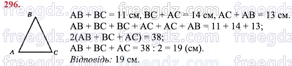 ГДЗ (відповіді та розв'язання) до вправи №296 - § 11. Трикутник і його елементи - Розділ 3. Трикутники