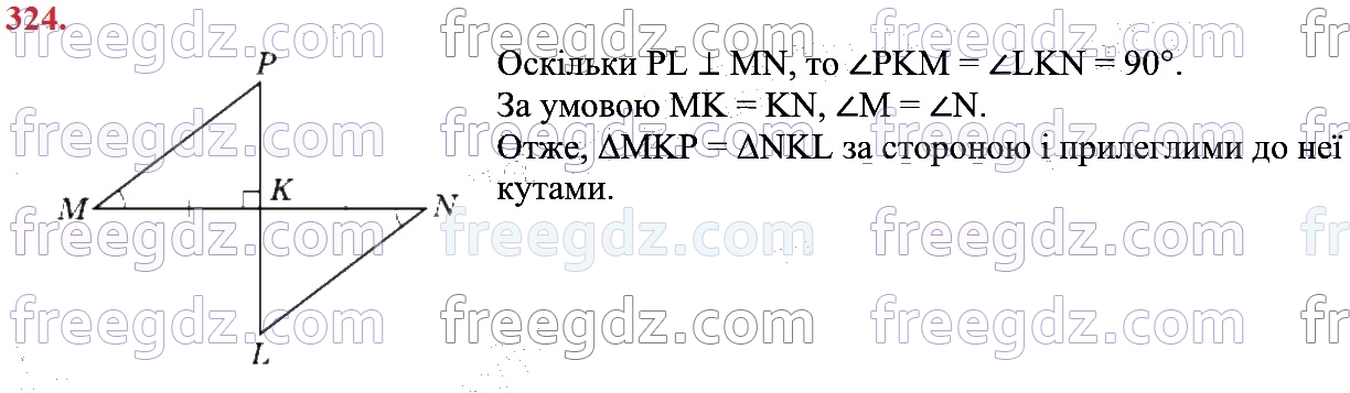 ГДЗ (відповіді та розв'язання) до вправи №324 - § 13. Перша та друга ознаки рівності трикутників - Розділ 3. Трикутники |