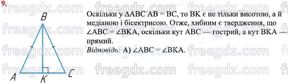 ГДЗ (відповіді та розв'язання) до вправи №9 - Домашня самостійна робота № 3 - Розділ 3. Трикутники