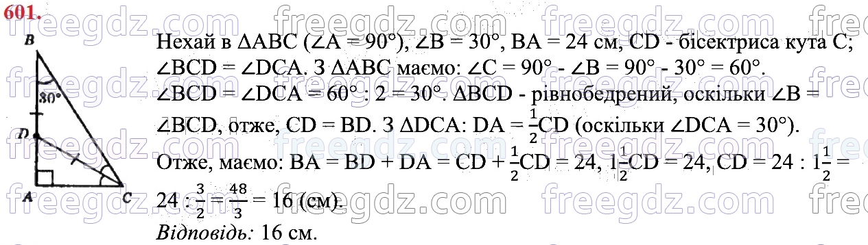 ГДЗ (відповіді та розв'язання) до вправи №601 - Вправи для повторення розділу 3 - Розділ 3. Трикутники |