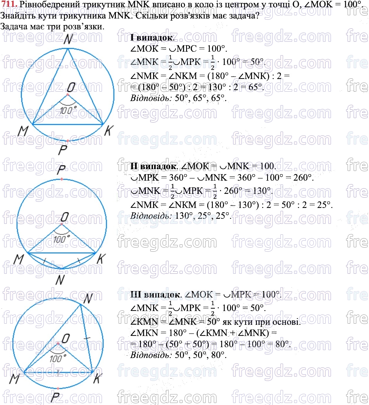 ГДЗ (відповіді та розв'язання) до вправи №711 - § 25. Центральні та вписані кути - Розділ 4. Коло і круг |