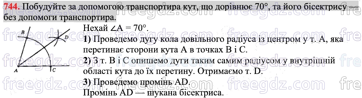 ГДЗ (відповіді та розв'язання) до вправи №744 - § 27. Основні задачі на побудову та їх розв'язування - Розділ 4. Коло і круг |