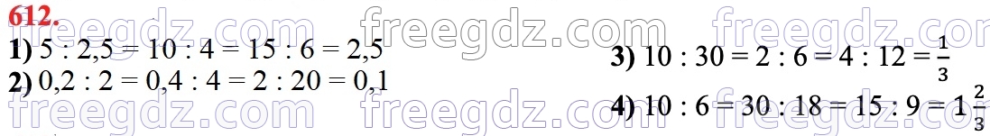 ГДЗ (відповіді та розв'язання) до вправи №612 - § 12. Відношення та його властивості - Частина 1 |